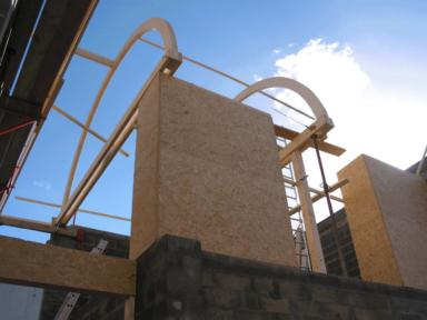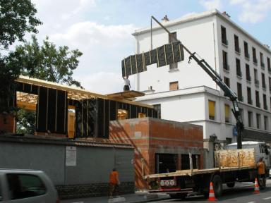 | |  L'ossature bois : | Son principe: des caissons autoportants sont préparés en atelier et installés sur le chantier. Ces éléments sont étudiés pour permettre l'installation ultérieure des portes et fenêtres. Cette ossature permet une grande variété de formes et de styles, pouvant être recouverte extérieurement d'une vêture en bois (panneaux, ou clin, en pose horizontale ou verticale) ou même d'un enduit traditionnel, moyennant une armature spécifique. L'ossature bois offre un grand nombre d'intérêts mais aussi certains inconvénients qu'il faut bien connaître pour mieux les contrôler, ou les contourner.